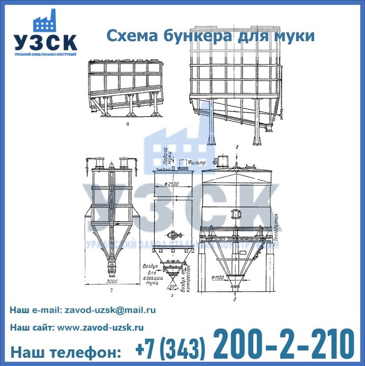 Завод «УЗСК» в Балаково проектирует, производит и поставляет целевое оборудование, в том числе, бункеры для хранения муки и прочих сыпучих материалов.