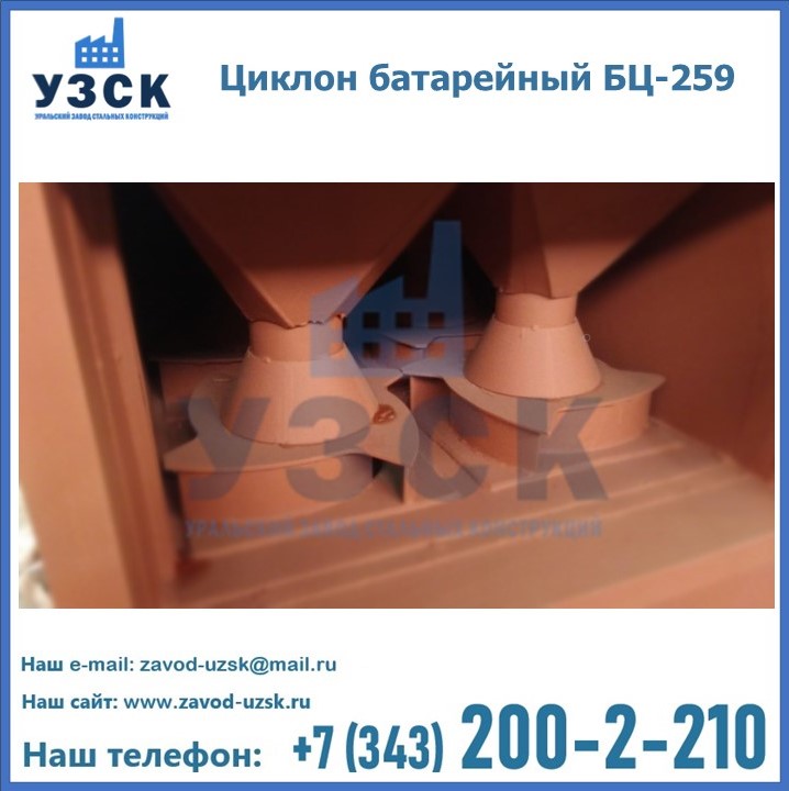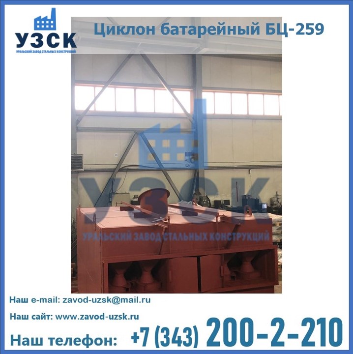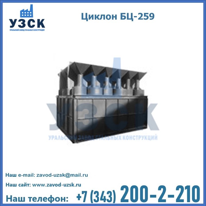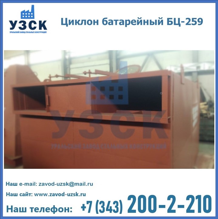 Приобрести качественное оборудование, в том числе, циклоны БЦ-259, можно в компании УЗСК в Балаково. Мы предлагаем долговечную и надежную продукцию по приемлемой цене. Заказать и купить циклоны или другие изделия высокого качества можно через сайт Уральского Завода Стальных Конструкций, или позвонив по указанному в разделе «Контакты» телефону.