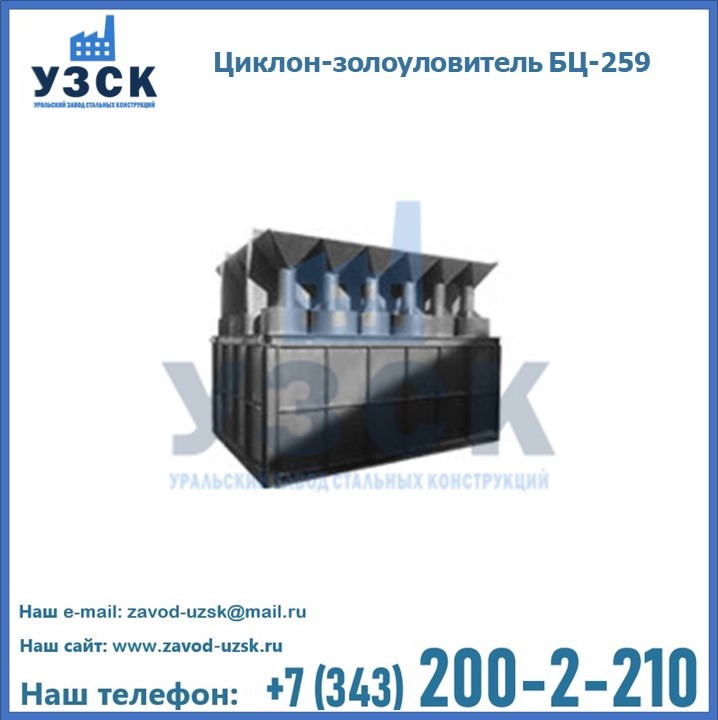 Если вы планируете купить то или иное оборудование, например, циклоны-золоуловители БЦ-259, то рекомендуем заказать данный товар на сайте УЗСК. Мы производим и реализуем продукцию высокого качества по приемлемой цене. Эксперты Уральского Завода Стальных Конструкций в Балаково проконсультируют вас по всем вопросам, помогут сделать выбор и оформить заказ без лишних временных затрат. Мы гарантируем соответствие нашей продукции всем требованиям ГОСТ и ТУ, а также износостойкость и высокую производительность предлагаемого оборудования. Если требуется изготовить циклон нестандартных размеров, то такой вариант выполнения заказа тоже предусмотрен, так как предприятие имеет собственные производственные площади и надежных поставщиков. На все поставляемое или производимое оборудование имеются чертежи и прочая техническая документация. Заказать и купить циклоны или прочее оборудование высокого качества и по доступной цене можно через наш сайт или по указанному в разделе «Контакты» телефону.