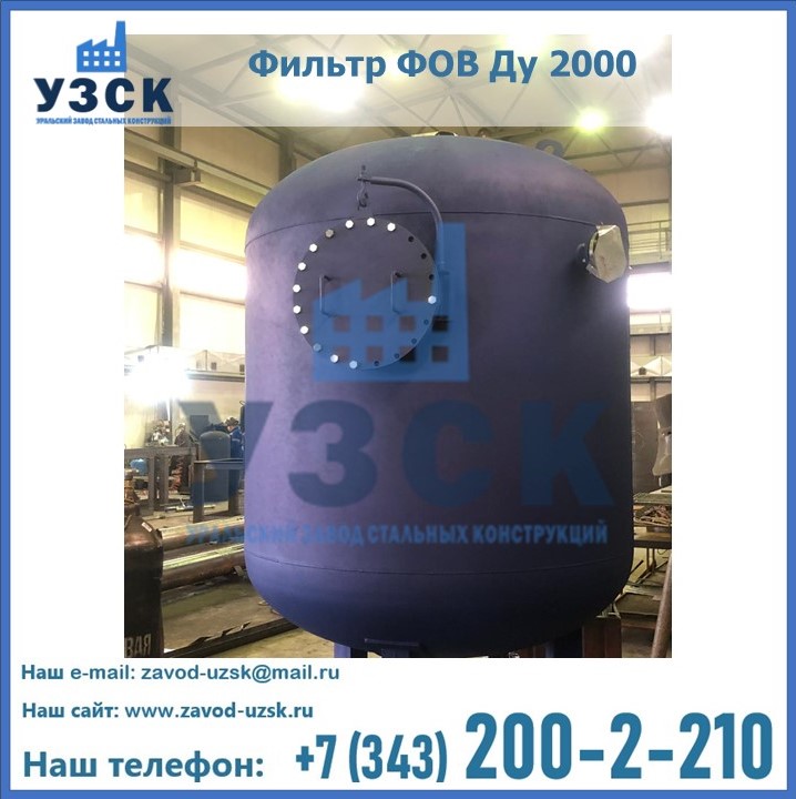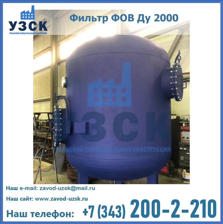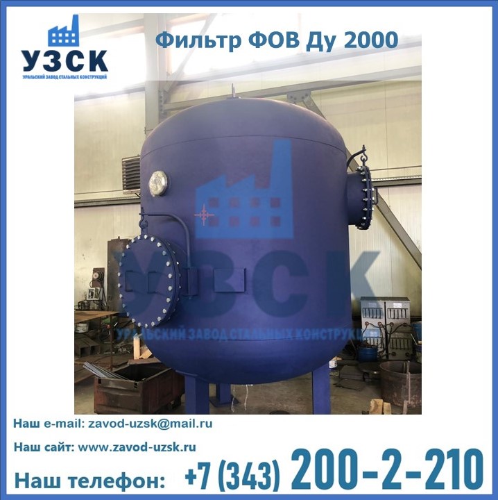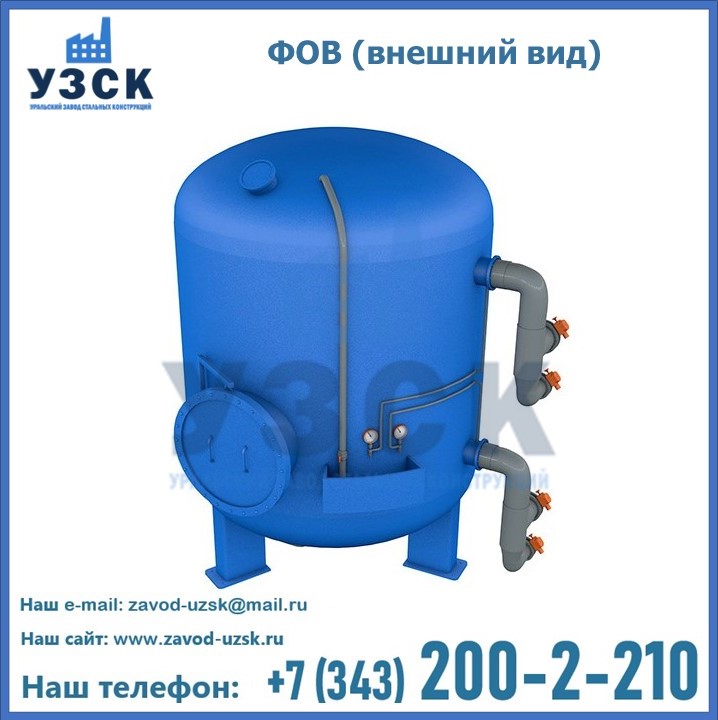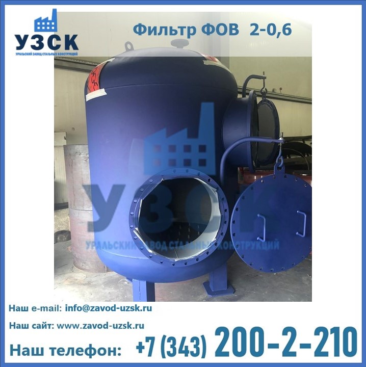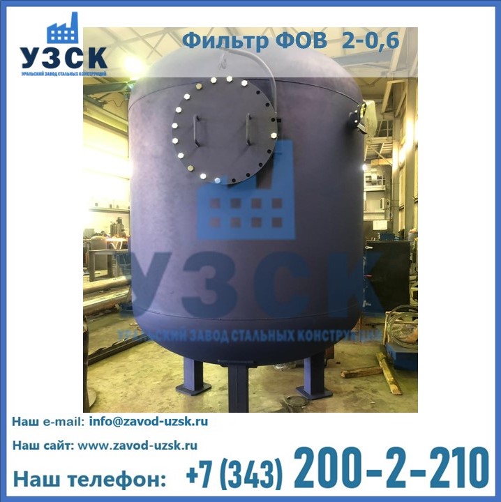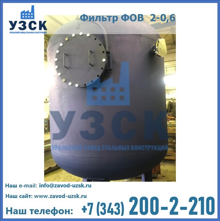 Удаление взвешенных веществ различного уровня дисперсности из рабочих жидкостей эффективно проводит фильтр осветлительный типа ФОВ (скорый или механический) — вертикально-цилиндрической формы установка, разработанная для систем водоподготовки различного класса. Оборудование представляет собой однокамерный агрегат для очистки воды рекомендованный для применения на станциях очистки стоков, в коммунальных котельных, на ТЭЦ, в промышленных отопительных системах и пр. Заказать производство ФОВ фильтров предлагает наш Уральский завод стальных конструкций в Балаково. У нас можно купить фильтрационное оборудование различного класса и типа, в том числе фильтры ФОВ из нержавеющей стали.