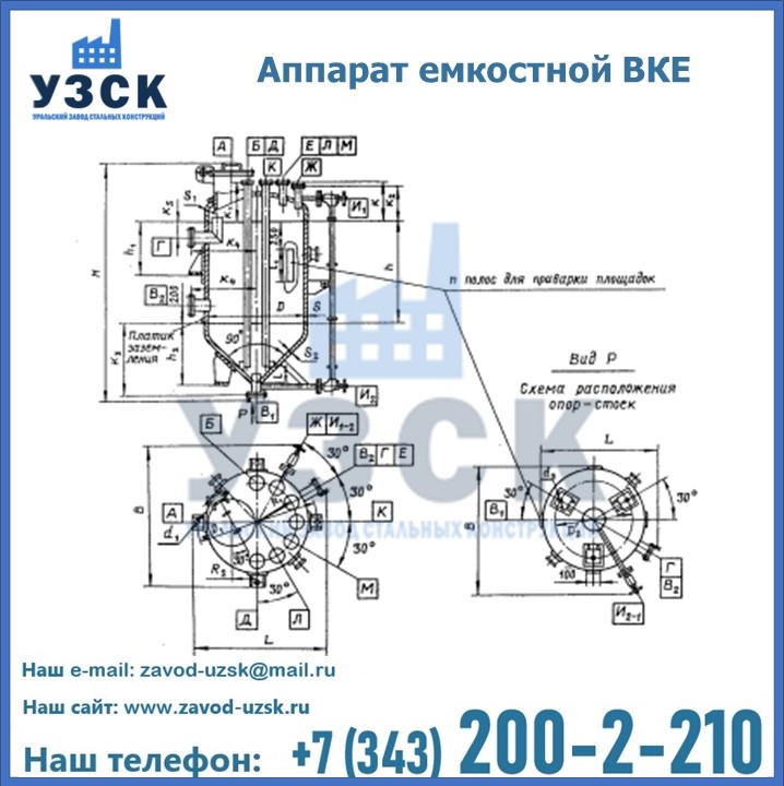 Емкостные аппараты ВКЭ представляют емкость с эллиптической крышей и коническим днищем. аппарат может использоваться в Балаково для приема и хранения жидкостей и взрыво- и пожароопасных веществ. Создаваемое давление не должно превышать 0,6; 1,0 МПа. Емкости ВКЭ выполняются как цельносварные. Используется марка стали, отвечающая степени агрессивности продукта и температуре эксплуатации.